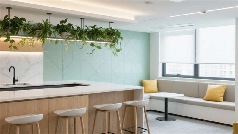 設計強調人文關懷,休閑區暖調燈光與柔軟卡座形成情緒緩沖帶,茶水間吧臺成為非正式社交樞紐。材質選擇凸顯可持續理念,微水泥、再生木材與綠植系統貫穿始終,呼應簡約背后的生態意識。整體空間在合肥這座創新之城,詮釋了高效辦公與人文溫度共生的當代范式。