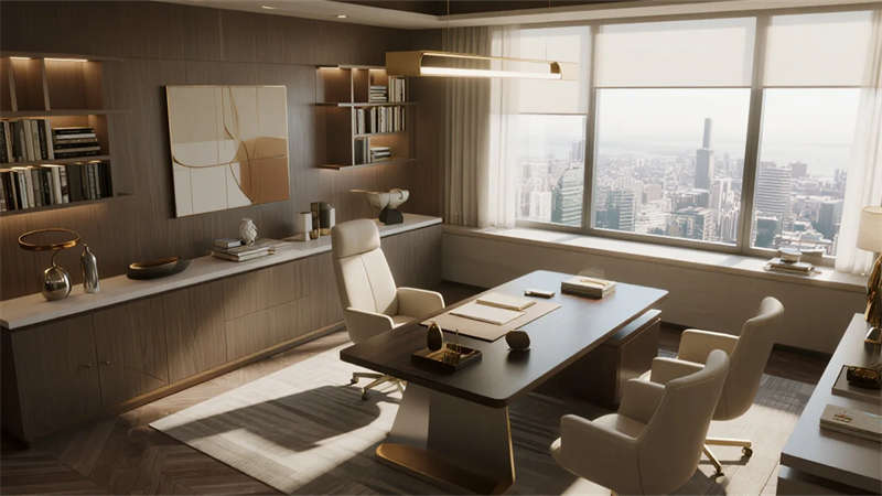 本設計以輕奢風格為核心,打造一個優(yōu)雅而舒適的辦公環(huán)境。外觀采用現(xiàn)代建筑語言,玻璃幕墻與金屬細節(jié)相結合,彰顯高端氣質。內部空間注重細節(jié)與品質,接待區(qū)以大理石前臺和金屬裝飾營造歡迎氛圍,開放式辦公區(qū)布局靈活,配備簡約家具和自然光元素,提升工作效率。會議室設計專業(yè)且智能,私人辦公室融合落地窗和 luxury 裝飾,提供靜謐工作空間。員工休息區(qū)與咖啡角注重舒適性,軟裝家具和溫馨 lighting 促進放松與交流。走廊區(qū)域通過藝術墻面和 lighting 效果增強空間感,整體設計融合材質對比與柔和色調,營造出精致而人性化的辦公體驗,強調美學與功能的平衡。