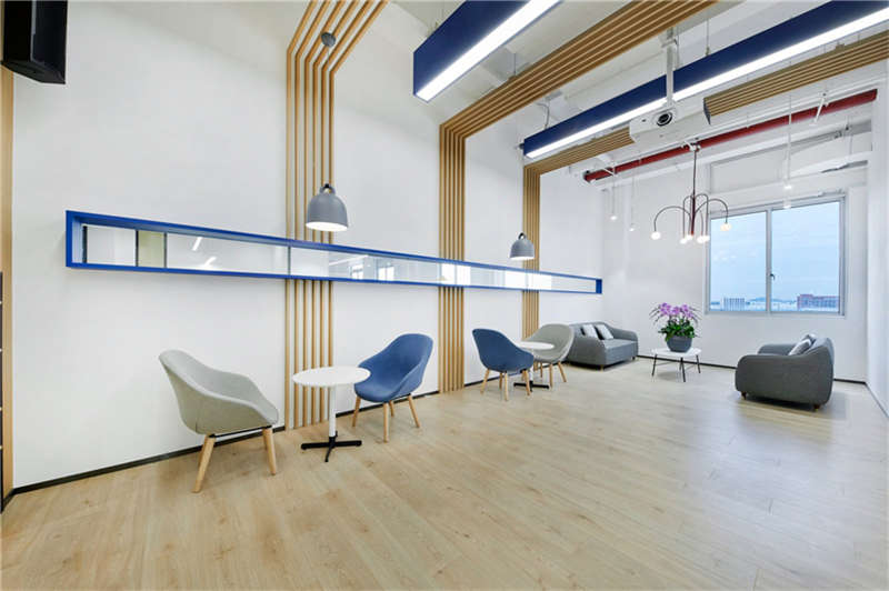 工位數量需求雖然龐大,但甲方對多元化的功能區的需求并未減少。于是我們將咖啡吧、茶水間、休閑區這幾個功能進行融合,破除了空間的界定,將水吧區打造成一個開放性的多功能區域,賦予它全新定義,從而達到滿足員工的一系列休閑目的。