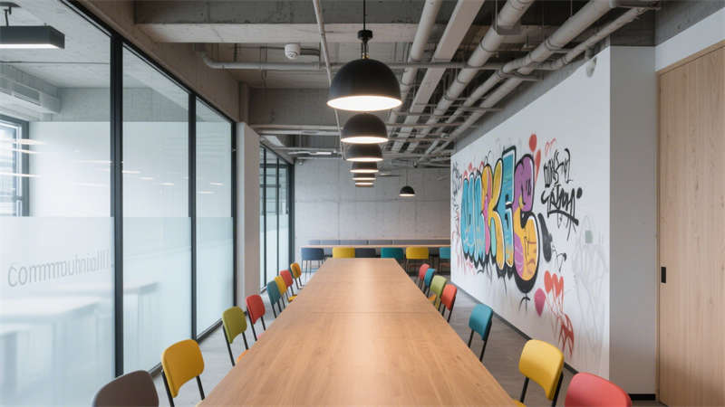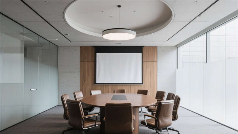 會(huì)議室設(shè)計(jì)兼顧功能性與互動(dòng)性,靈活的桌椅擺放滿足不同會(huì)議形式需求,簡(jiǎn)潔的墻面裝飾與適宜的燈光,營(yíng)造出專(zhuān)注、高效的交流氛圍。休閑區(qū)域則增添溫馨感,通過(guò)柔軟的家具、溫和的色彩與綠植點(diǎn)綴,為辦公人員提供放松身心的空間,緩解工作壓力。?