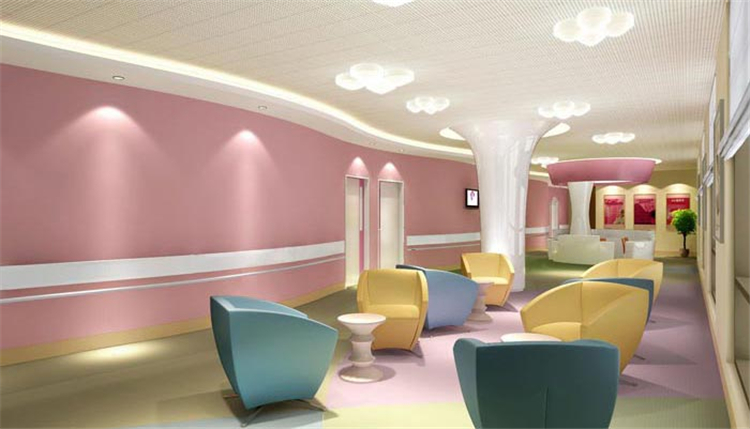 設(shè)計理念:兒童醫(yī)院裝修應(yīng)該注意色彩、圖案的搭配,應(yīng)選擇塑造性強(qiáng)、裝飾性較突出又不影響醫(yī)院環(huán)境衛(wèi)生的材料,如安全消毒板。婦女兒童醫(yī)院裝修設(shè)計之初,設(shè)計師就不斷吸收建筑設(shè)計中“母親懷抱小孩”的理念。