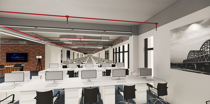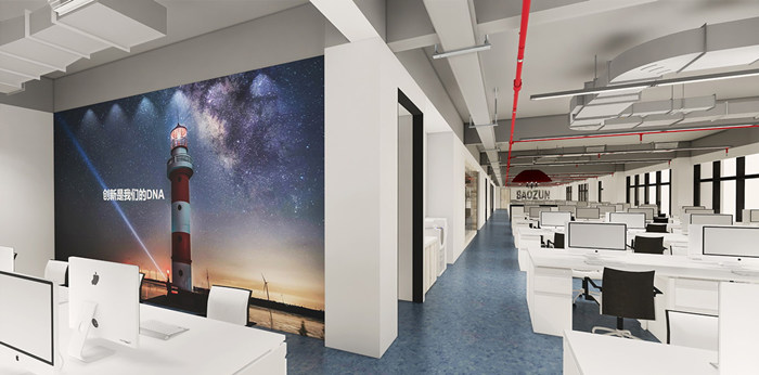 電子商務(wù)商業(yè)伙伴和領(lǐng)先的技術(shù)研發(fā)及解決方案公司。設(shè)計團(tuán)隊根據(jù)電商的科技創(chuàng)新與行業(yè)桂冠特性,在設(shè)計中采用具有科技力量的LOFT風(fēng)格,并將企業(yè)特性經(jīng)過藝術(shù)手法運(yùn)用到辦公空間設(shè)計之中,使平常的空間關(guān)系發(fā)生了變化,從而營造出具有科技、創(chuàng)新、活力的辦公空間氛圍。