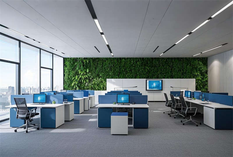 本項目為4500㎡現(xiàn)代簡約風格辦公樓整體設(shè)計,以'高效·生態(tài)·智能'為核心設(shè)計理念。空間采用淺灰、木色、深藍三色基調(diào),搭配企業(yè)VI系統(tǒng)的橙色點綴。重點區(qū)域配置智能照明系統(tǒng)和模塊化家具,實現(xiàn)空間靈活重組。環(huán)保建材使用率達到85%,包含竹木纖維板、低VOC涂料和再生地毯。創(chuàng)新運用垂直綠化墻改善空氣質(zhì)量,結(jié)合全景玻璃幕墻最大限度引入自然光線。智能系統(tǒng)集成人臉識別門禁、環(huán)境監(jiān)測及會議預約系統(tǒng),打造現(xiàn)代化智慧辦公空間。功能分區(qū)涵蓋高效辦公區(qū)、智能會議系統(tǒng)、生態(tài)休閑空間三大模塊,滿足多元化辦公需求。