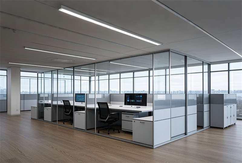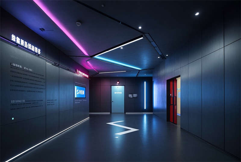 本案為 6000 平方米現(xiàn)代化科技辦公樓裝修項目,設(shè)計采用 ' 未來辦公生態(tài) ' 理念,以藍灰主色調(diào)構(gòu)建專業(yè)商務(wù)氛圍。空間規(guī)劃突破傳統(tǒng)格局,大堂設(shè)置 10 米挑空 LED 藝術(shù)裝置墻,智能光控系統(tǒng)實現(xiàn)晝夜模式切換。開放式辦公區(qū)采用模塊化組合家具,集成無線充電、智能升降等人性化功能。會議室配置可觸控霧化玻璃隔斷系統(tǒng),實現(xiàn)空間靈活轉(zhuǎn)換。特別設(shè)計的階梯會議中心配備全景聲控系統(tǒng),墻面采用吸音穿孔鋁板確保會議私密性。環(huán)保理念貫穿始終,選用零甲醛板材和可回收地毯,屋頂花園配置雨水收集系統(tǒng)。燈光設(shè)計采用色溫可調(diào) LED 光源,通過智能中控系統(tǒng)實現(xiàn)場景模式一鍵切換,打造高效、舒適、可持續(xù)發(fā)展的新型辦公生態(tài)圈。