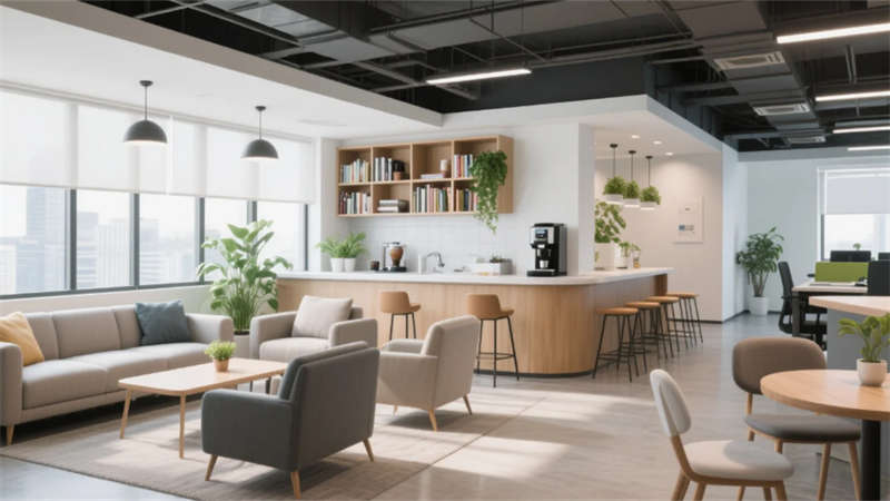 本辦公樓設(shè)計(jì)以簡約現(xiàn)代風(fēng)格為核心,打造一個(gè)統(tǒng)一而流暢的空間體驗(yàn)。整體強(qiáng)調(diào)功能性、舒適性和美學(xué)平衡,每個(gè)功能區(qū)均采用中性色調(diào)、干凈線條和自然元素,營造出寧靜和諧的環(huán)境。大堂入口以開放通透的布局迎接用戶,結(jié)合玻璃幕墻和木質(zhì)細(xì)節(jié),傳遞專業(yè)而溫馨的第一印象。開放式辦公區(qū)通過模塊化家具和充足采光,促進(jìn)團(tuán)隊(duì)協(xié)作與效率。會(huì)議室設(shè)計(jì)注重靈活性,透明隔斷和集成設(shè)備支持高效交流。員工休息區(qū)和餐廳咖啡吧作為社交中心,提供舒適休閑空間,增強(qiáng)員工福祉。經(jīng)理辦公室平衡隱私與開放性,簡約家具營造專注氛圍。走廊和衛(wèi)生間延續(xù)統(tǒng)一美學(xué),注重清潔與引導(dǎo)性,確保空間銜接自然。