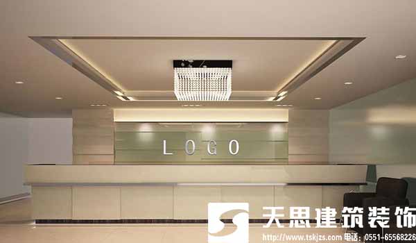 辦公室前臺燈光設計方案:辦公室前臺燈光設計亮度要夠而且一定要有聚焦在logo的字體上,這種整體前臺設計的效果才好。