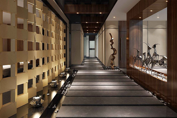 走廊的風(fēng)格營造出小橋流水的精巧,漫步其中,心如止水,心境得到極大釋放,同時在色彩的運用上襯托出高貴典雅。