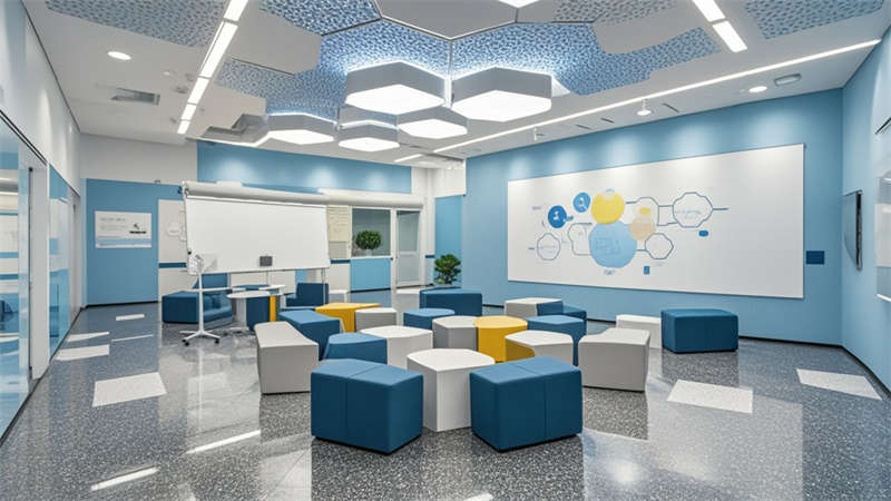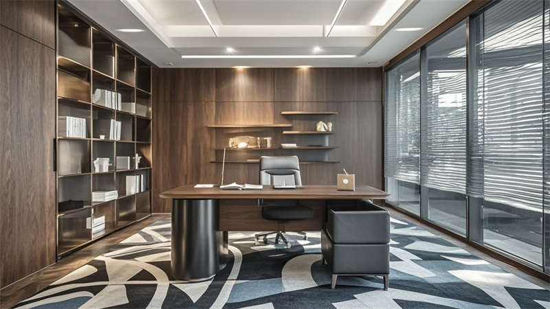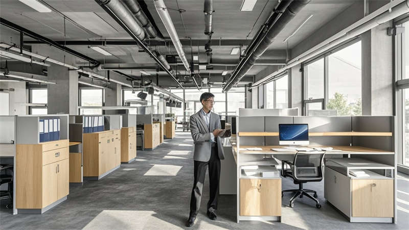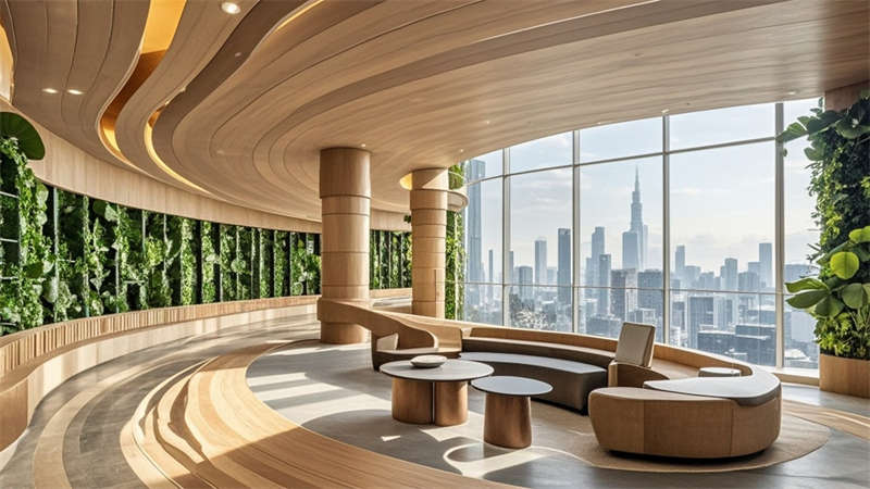 本1500㎡現(xiàn)代簡約辦公室設(shè)計以'高效協(xié)作·人文關(guān)懷'為核心,采用模塊化空間布局提升使用彈性。主色調(diào)選用淺灰、白、木三色系,局部點綴企業(yè)深藍色強化品牌認(rèn)知。開放式辦公區(qū)采用1.2m×1.8m標(biāo)準(zhǔn)工位模塊,通過玻璃隔斷實現(xiàn)90%自然光滲透率。智能照明系統(tǒng)根據(jù)日照強度自動調(diào)節(jié)色溫,全年節(jié)電率達35%。核心筒改造區(qū)運用曲面木飾面弱化建筑結(jié)構(gòu),形成自然交流節(jié)點。聲學(xué)設(shè)計方面,蜂窩吸音板(NRC 0.85)與隔音艙(STC 52)組合控制噪音污染。茶水區(qū)采用磁吸軌道插座系統(tǒng),支持設(shè)備靈活接入。所有家具均符合WELL建筑標(biāo)準(zhǔn),辦公椅配備6向調(diào)節(jié)功能。通過BIM技術(shù)實現(xiàn)管線綜合,保留3.2米凈高營造開闊感。