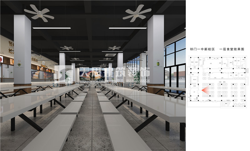 安徽天思專業專業提供餐廳設計,食堂裝修施工服務,質量有保障。以下為祁門一中食堂設計效果圖,請您欣賞。如果您有相關需求請及時與我們聯系。