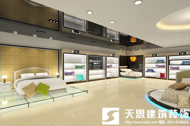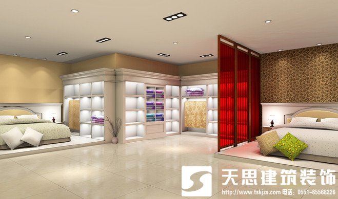 家紡店裝修設計,家紡店裝修裝飾一定要找正規專業的裝修裝飾公司,這樣才能保證設計和裝修的質量!安徽天思建筑裝飾工程有限公司是一家專業公裝公司,擁有國家等級資質,集家裝、工裝、綠化園藝、監理、裝飾材料為一體的現代裝飾企業。擁有專業的設計和裝修團隊,充分實現了人力資源的優勢整合。借助先進的施工技術和合理的人員配置,確保服務的質量、時效性和低成本。