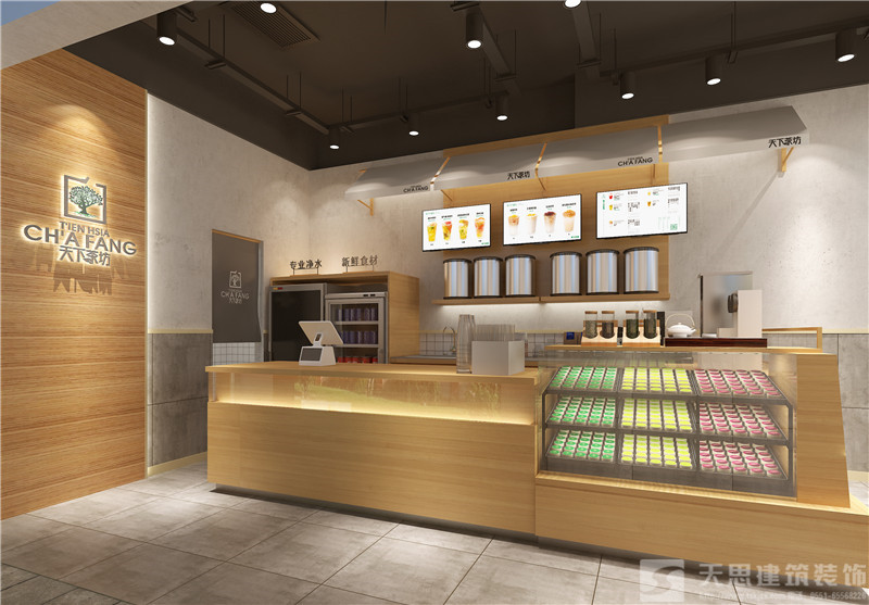 裝修設(shè)計(jì)項(xiàng)目:天下茶坊茶飲店 設(shè)計(jì)師:胡英豪 以下為店面設(shè)計(jì)效果圖 店面一角 安徽天思建筑裝飾專業(yè)提供合肥店面設(shè)計(jì),店面裝修施工服務(wù),質(zhì)量有保障。公司長期與卡旺卡,巴黎