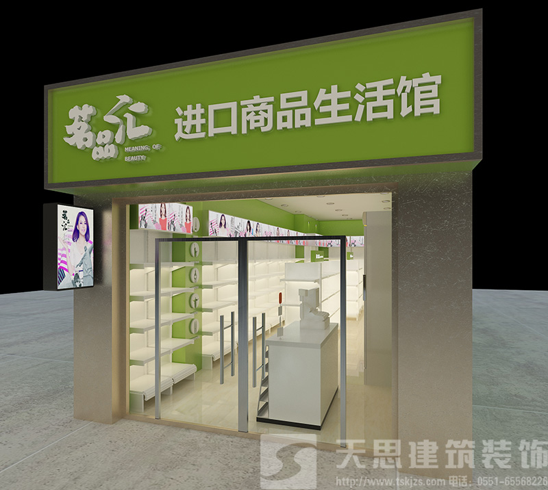 項(xiàng)目名稱:茗品匯進(jìn)口商品生活館 設(shè)計(jì)師:汪袁 面積:40平米 項(xiàng)目地址:包河區(qū)海關(guān)路 設(shè)計(jì)簡(jiǎn)介:進(jìn)口商品生活館門頭刷上清新的綠色乳膠漆,鑲嵌白色發(fā)光體