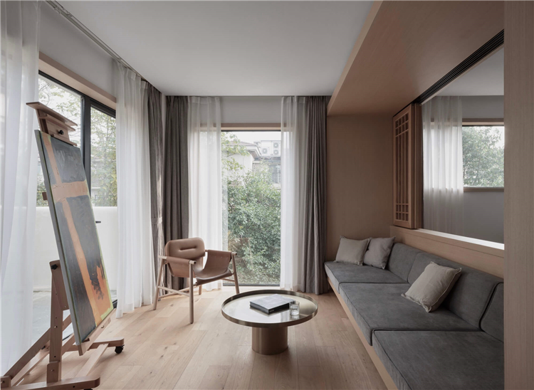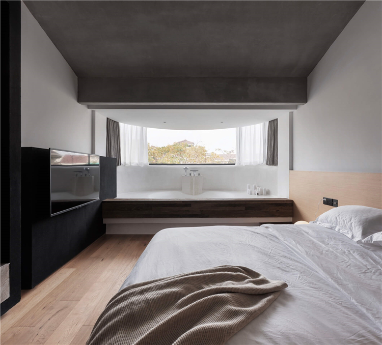 設計師針對民宿的入住功能一共設計了八間不同布置風格的客房,將入住功能布置與二三四層,重新規劃房間平面,擴大每一個房間的衛生間,增加落地窗,以此增加舒適度,同時為入住的客人創造趣味性的體驗。在每一層中間以中島作為過渡,對應每一個房間,即協調客房的動線關系,又給每一位入客人提供便捷的交流空間。