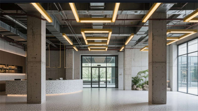 設計將機械的冷靜與自然的呼吸編織為共生語言。裸露的鋼骨結構承載生產使命,而攀附的綠植、原木肌理與暖光,則為空間注入生命脈搏。合肥堅韌務實的精神被轉化為混凝土立柱與苔蘚墻的碰撞——冷硬材質因生長而柔軟。
