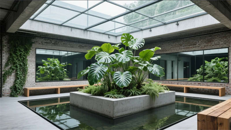 八個功能區如生態齒輪緊密咬合:入口苔蘚墻如自然序章;生產車間的精密設備與綠植帶共舞,詮釋效率與生機的平衡;屋頂花園以巢湖為靈感的地景裝置,將城市記憶引入高空。透明性貫穿始終:實驗室玻璃墻外的綠意、辦公區窗外的庭院,讓環境成為協作的無聲伙伴。
