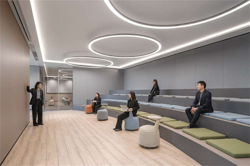 以高效私密和開放交流為光譜的兩軸,設計團隊設計了完全私密的電話亭,部分私密的玻璃盒子辦公區,半開放的格柵盒子辦公區,以及完全打開鼓勵交流的開放式辦公區。不同尺度,不同開放度的辦公區,為所有員工提供了包容、公平、有彈性、可持續和健康的工作空間,社恐與社牛,各得其所。