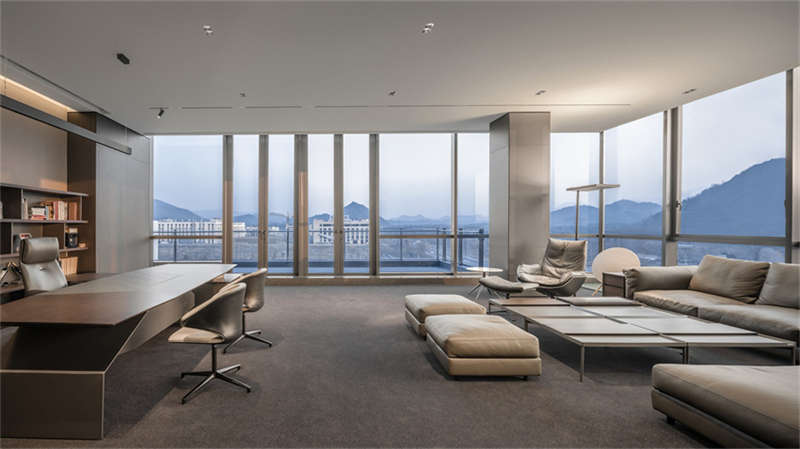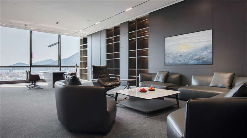 行至六樓行政層,整體風格變得商務穩重,彰顯現代商務總裁氣息,展現了多種不同性格的總裁辦公空間。