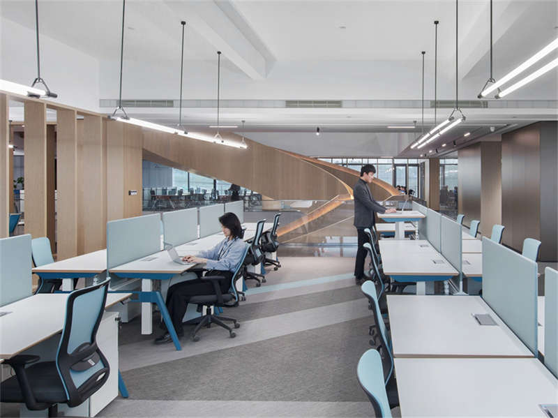 回望中庭,樓梯宛若一座沐浴在陽光下的“游廊”,可開啟天窗為所有樓層的員工提供充足的陽光和新鮮空氣,在工作間隙讓頭腦徹底放松,中庭也成為企業的標志性的身份特征。
