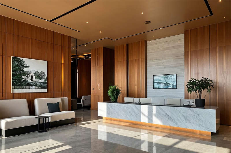 步入酒店大堂,溫暖柔和的燈光灑落在大理石地面上,木質墻面與綠植點綴相得益彰,營造出寧靜而優雅的氛圍。開放式空間設計讓自然光線充盈每個角落,簡約而不失格調的沙發組合為賓客提供舒適的休憩區域。無論是商務洽談還是短暫停留,這里都能讓您感受到賓至如歸的溫馨。
