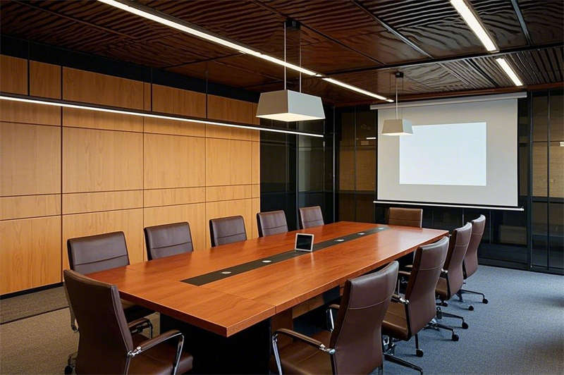 中餐廳將現代簡約與中式傳統完美融合,木質屏風與簡約吊燈相映成趣,暖色調燈光為用餐氛圍增添一份溫馨。無論是家庭聚餐還是商務宴請,這里都能滿足您的需求。會議室則配備了先進的智能會議系統,簡約大氣的設計風格與高效的商務功能相結合,為您提供理想的辦公環境。