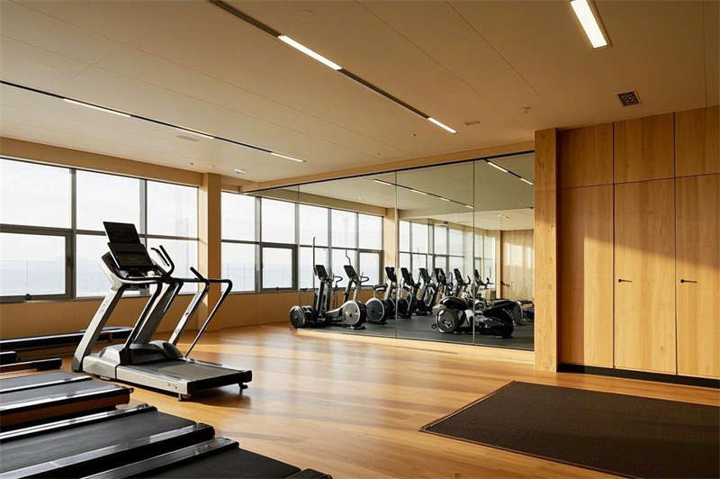 健身房內,落地鏡墻面與木質地板打造出寬敞明亮的運動空間,有氧器械區、力量訓練區與瑜伽區一應俱全,讓您在旅途中也能保持健康活力。