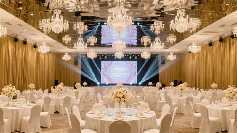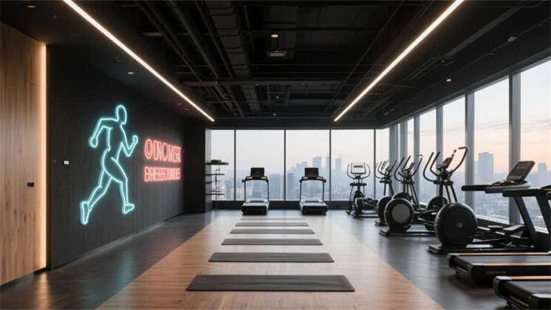 公共空間亮點紛呈:全日餐廳以垂直綠植墻與開放式廚房激活社交氛圍;無柱宴會廳憑借鏡面天花板與水晶吊燈陣列,打造層疊的光影盛宴;健身房通過全景落地窗將城市景觀融入運動場景,啞光黑器械與霓虹燈裝飾碰撞出現代活力。細節處更顯匠心——電梯間的金屬線條浮雕、走廊的幾何光影地毯,均以藝術化手法弱化傳統酒店的空間邊界。