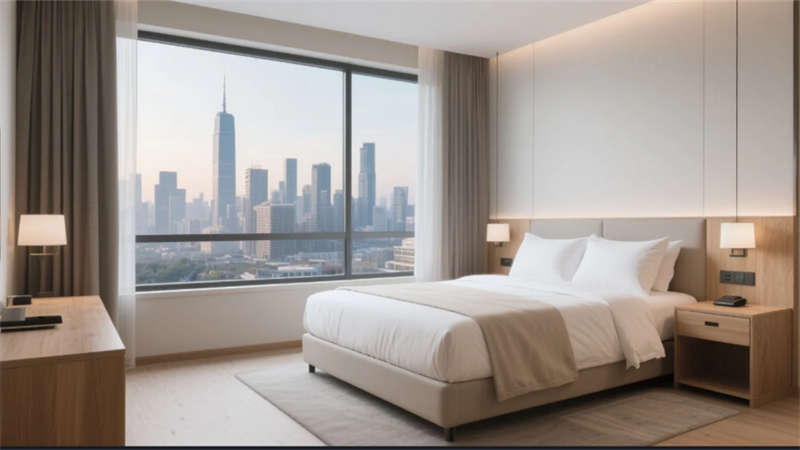這個酒店設計以現代簡約風格為核心,通過統一的色調和元素,創造出和諧而優雅的空間體驗。大堂作為入口,以淺木色和白色為主調,配以舒適的沙發和綠植,營造出welcoming的氛圍。前臺延續簡約理念,木質柜臺和藝術細節彰顯精致感。餐廳采用開放式布局,木質桌椅和吊燈的點綴,讓用餐時刻充滿輕松與自然氣息。酒吧區則以深色吧臺和暖光照明,提供私密而時尚的社交空間。客房設計注重舒適與隱私,大窗戶引入城市景觀,簡約家具確保寧靜的休憩環境。會議室專業而高效,中性色調和隱藏照明支持專注的商務活動。健身房融入鏡面和綠植,活力十足又不失簡約美感。水療區則強調寧靜,柔和燈光和自然元素促進身心放松。整個項目強調人與環境的連接,每個功能區都服務于寧靜與精致的整體體驗,為賓客打造難忘之旅。
