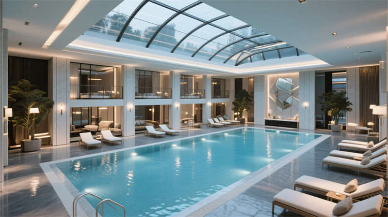 這座酒店設計以輕奢風格為核心,將優雅與舒適完美融合,打造一處都市中的寧靜綠洲。大堂區以高挑空間和水晶吊燈開場,大理石地板的流暢線條延伸至每個角落,營造出溫馨迎賓的初印象??头繀^延續簡約美學,落地窗引入自然光,木質墻面與藝術細節相得益彰,為旅客提供私密休憩港灣。餐廳區以開放式布局為亮點,吊燈與綠植交織,營造輕松用餐氛圍;會議區則通過專業家具和柔和色調,平衡商務與休閑需求。健身區活力四射,鏡面墻反射光線,空間通透;SPA區以寧靜為主導,水池和按摩區帶來身心放松體驗。泳池區成為奢華焦點,玻璃頂棚下光影舞動,躺椅區盡享愜意時光;酒吧區以時尚元素收尾,金屬吧臺與燈光呼應,為夜晚注入社交活力。整體設計注重材質與光線的和諧,每一功能區都獨立而統一,彰顯低調奢華。在合肥這一活力都市中,酒店將成為一處設計杰作,滿足多元需求。