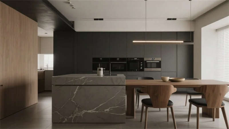 該設計以現代簡約語言重構居住本質,將自然光影作為空間敘事的主角。建筑外觀采用純凈的幾何體塊組合,原木格柵與純白墻面對話,形成克制而溫暖的初印象。室內摒棄冗余裝飾,通過微水泥的質樸肌理、實木的溫潤觸感以及亞麻織物的呼吸感,構建出具有生命力的簡約美學。