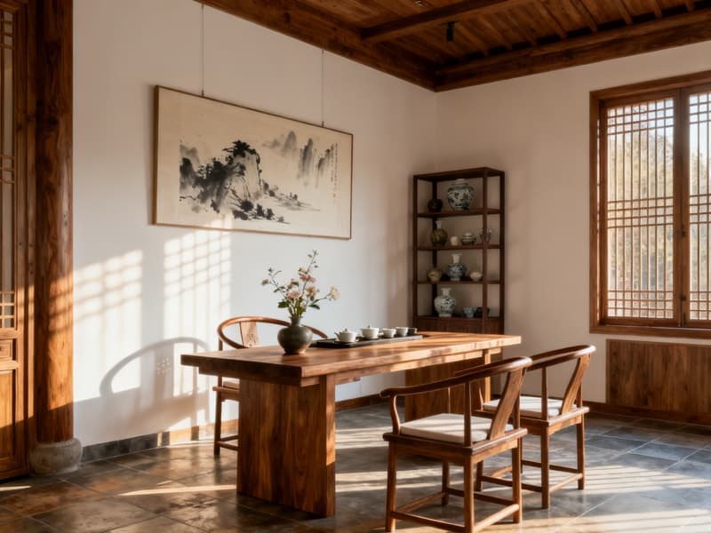 本設(shè)計(jì)以中式新古典風(fēng)格為核心,為合肥民宿勾勒出兼具古韻與雅致的居住空間。外觀設(shè)計(jì)融入傳統(tǒng)建筑的對稱美學(xué),青瓦與木構(gòu)相映,清晨柔光灑落時(shí),墻面與門窗的線條更顯溫潤,搭配門前錯(cuò)落的綠植,悄然營造出清幽靜謐的氛圍,既保留中式韻味,又不失現(xiàn)代居住的舒適感。?