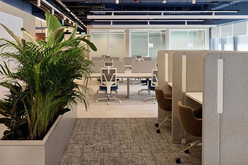 開放協作、動靜相容、靈活多元(寧靜的工作區、舒適的休閑區、開敞多元的社交區和協作區),建立在ABW基礎上的超強適應性空間規劃支持人們多樣化的工作需求。簡約溫馨的配色,加以韻律感的元素重復應用,以及隨處可見的大量綠色植物,讓整個空間在恬靜溫婉中又洋溢著靈動的韻致。