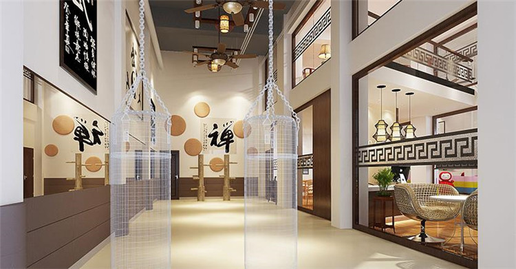 該拳館由三家門面打通,根據空間劃分成三個大區域,整體風格和文化定位重點體現出典雅、簡潔、有歷史韻味的、體現中國歷史文化的博大精深的禪藝文化.