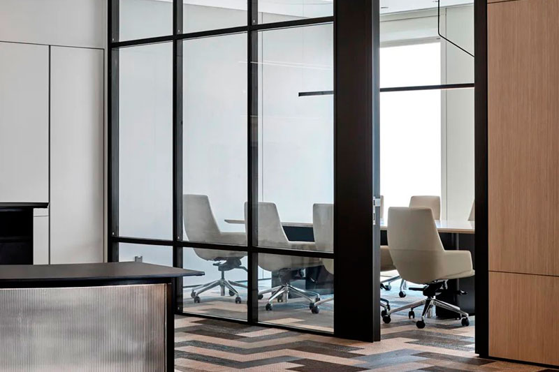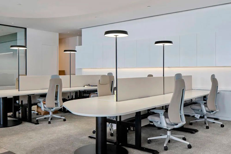 后場辦公區延續了前廳的辦公理念,結合不同功能形式的會議室、電話間,提供了多選擇的工作模式,簡潔而高效。大量可再生面料的墻飾、可回收吸音板和仿生苔蘚的應用,豐滿了視覺層次并極大提升了空間的聲學效果。