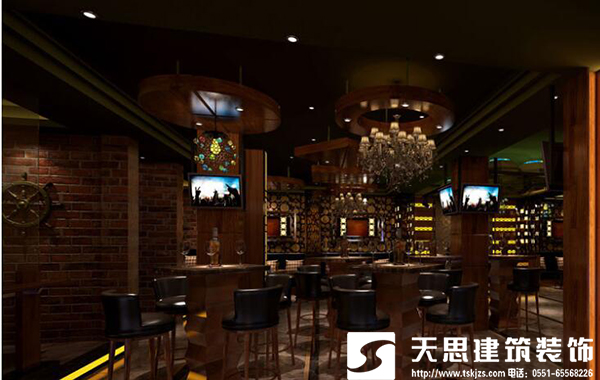 合肥天思裝飾工程有限公司是一家專業從事酒吧裝修、休閑會所裝修、網吧裝修等各種場所裝修設計施工。我們致力于為每個客戶打造完美空間。酒吧越來越受到人們的重視。越來越多地出現中國都市的一個個角落。酒吧品種多多,酒吧的情調迷人,且不乏激情,它成為青年人的天下,更是黑夜不歸的一種默許。酒吧的興起與紅火已經成為了當今時代不可否認的事實。因此對于酒吧裝修的品味也在不斷提高著。今天就帶大家看看幾個酒吧裝修的效果圖。