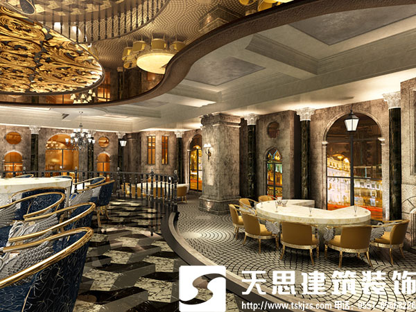 在西餐廳裝修過程中,包括走廊立向,西餐廳的墻面裝修等都是形成空間環(huán)境氣氛的重要元素,它們的造型在形式上應(yīng)比較自由,避免對稱式構(gòu)圖,對一些形式美的原則則可以突破,給人以強(qiáng)烈的視覺沖擊,在界面材料的運(yùn)用上也可別出心裁,給人眼睛一亮之感。這就是裝修的創(chuàng)造性。