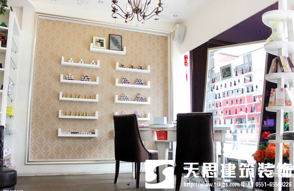 合肥天思裝飾提醒大家在這個追求美和健康環(huán)保的年代美甲店的室內(nèi)光線應該充足,白天盡量采用自然光,選用落地玻璃窗能夠有效的利用自然光,讓室內(nèi)能有很好地采光性。在燈光的選擇上,以溫馨為主,能夠讓顧客在享受服務時放松身心,而光線的層次感,能夠讓顧客置身于愉悅輕松的氛圍中,更好地襯托出美甲的效果來。