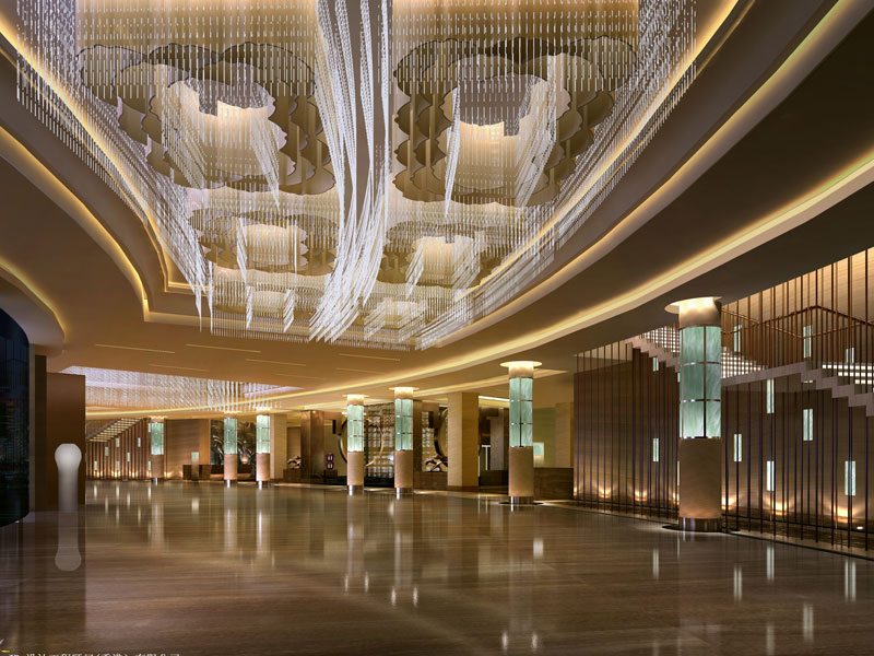 根據(jù)酒店室內(nèi)其功能分區(qū)的不同,大堂設(shè)計的類型也不僅僅只有一種。其中一些大堂通道也許會通往商店區(qū)、餐飲區(qū)、會議區(qū)等各類型功能空間,甚至也有可能通往與之設(shè)計風(fēng)格截然不同的各種商業(yè)區(qū),尤其是某些設(shè)計個性鮮明的空間。顯然在這種形式下,大堂已然成為了這些多元空間相互碰撞、相互協(xié)調(diào)的消化體。巧妙的大堂設(shè)計,使建筑外部環(huán)境以及室內(nèi)各空間融合成一個集滿足功能需求、造型藝術(shù)美感于一身的多元體,達到把簡單的“多樣性”歸納為多元的"統(tǒng)一性”的目的。