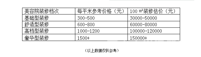 以上是我們根據當前的市場行情,所制定的一份參考裝修價格表,當然在實際當中,根據地理位置以及材料選擇,還有裝修風格等各種因素,都會對美容院的裝修價格起到影響,所以美容院裝修要花多少錢還得以實際情況為準。