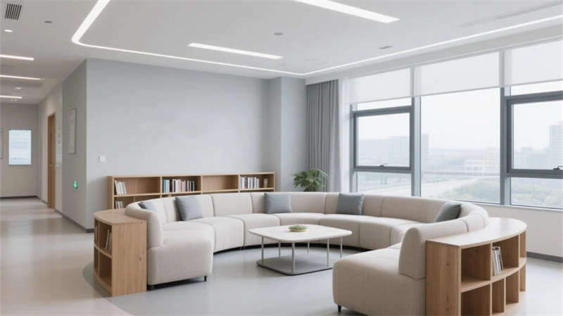 該社區(qū)醫(yī)院設(shè)計(jì)以現(xiàn)代簡(jiǎn)約理念為核心,營(yíng)造出溫馨而高效的醫(yī)療環(huán)境。整體空間強(qiáng)調(diào)人性化布局,接待大廳寬敞明亮,弧形接待臺(tái)與自然光結(jié)合,營(yíng)造親切的第一印象。候診區(qū)舒適寧靜,沙發(fā)與書架的點(diǎn)綴減輕等待焦慮,診室則注重隱私與專業(yè)感,柔和色調(diào)提升患者信任。藥房設(shè)計(jì)簡(jiǎn)潔清晰,便于快速取藥,急診室布局高效,確保緊急響應(yīng)流暢。化驗(yàn)室和影像科突出功能性,無菌環(huán)境與設(shè)備集成保障精準(zhǔn)診療,康復(fù)區(qū)開放通透,綠植與自然光促進(jìn)身心恢復(fù)。所有區(qū)域統(tǒng)一運(yùn)用中性色調(diào)、木質(zhì)元素和流線型家具,強(qiáng)化視覺連貫性,同時(shí)融入充足采光與綠意,打造舒緩氛圍。設(shè)計(jì)不僅提升醫(yī)療體驗(yàn),還呼應(yīng)了合肥的城市人文特色,為居民提供一處安心、便捷的健康港灣。