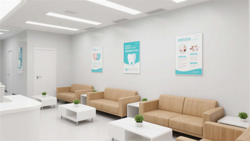 在視覺呈現(xiàn)上,以低飽和度的中性色為基礎,搭配局部溫潤的軟裝元素,營造出專業(yè)且溫和的氛圍,緩解患者就診時的緊張情緒。材質選擇上,優(yōu)先考慮易清潔、耐磨損的環(huán)保材料,兼顧實用性與健康需求。整體設計無冗余裝飾,以簡潔的形態(tài)承載功能,讓空間既符合口腔醫(yī)療的專業(yè)屬性,又傳遞出舒適、安心的體驗感。