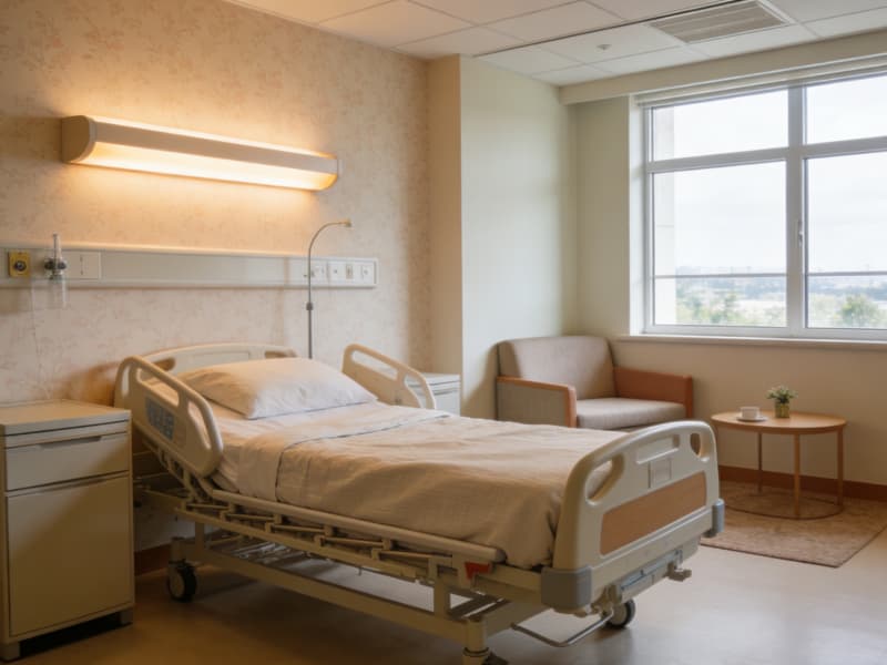 病房區(qū)摒棄冷硬色調(diào),墻面覆以柔和肌理的壁紙,病床旁設(shè)置可調(diào)節(jié)的柔光系統(tǒng),獨(dú)立觀景窗引入外部綠意,每間病房配備小型休憩角,讓陪護(hù)者也能獲得舒適體驗。