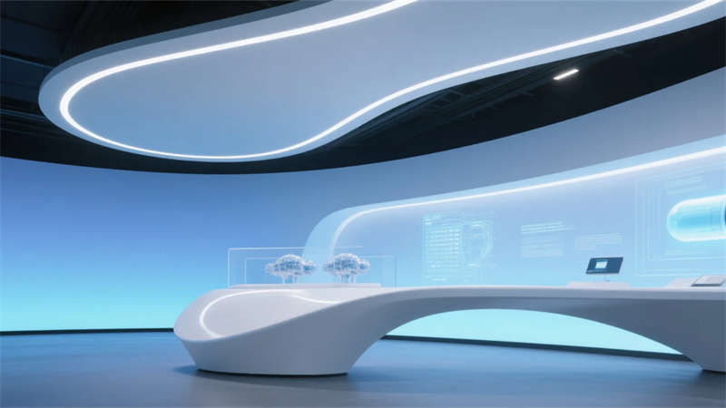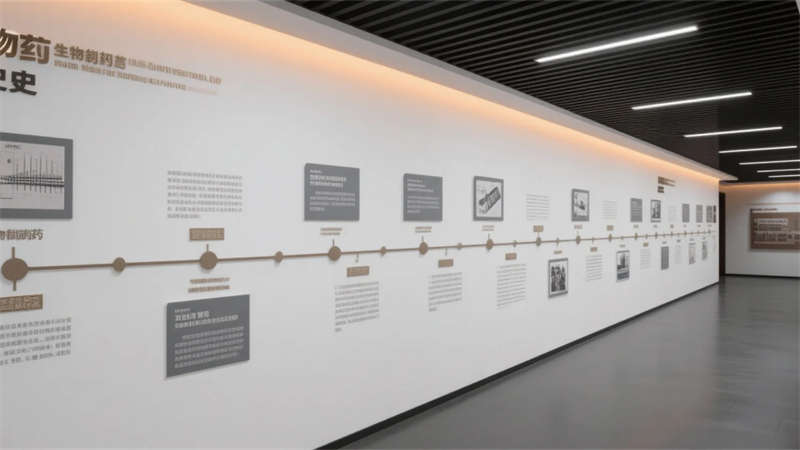 該生物制藥廠展廳設計以現代簡約理念為核心,營造出潔凈、高效的科技氛圍。整體空間運用中性色調與流暢線條,避免繁雜裝飾,突出生物制藥的創新主題。入口大廳通過抽象DNA元素和LED動畫傳遞歡迎感,引導參觀者進入核心展區。產品展示區以簡約柜體和信息面板,清晰呈現研發成果,而實驗室模擬區則用透明隔間展示設備,強調開放與真實性。歷史長廊以時間軸形式,簡潔敘述行業演進,互動體驗區則通過觸摸裝置增強參與性,讓參觀者直觀理解藥物研發。休息洽談區融入綠植和自然光,提供舒適交流空間,未來展望區則以流線型投影展現科技前瞻。整體設計注重功能分區與視覺統一,材質選擇環保耐用,如玻璃、金屬和環氧樹脂,確保空間既專業又親和。該展廳不僅服務于企業形象,更成為合肥地區生物科技交流的亮點,體現簡約美學與實用性的完美融合。