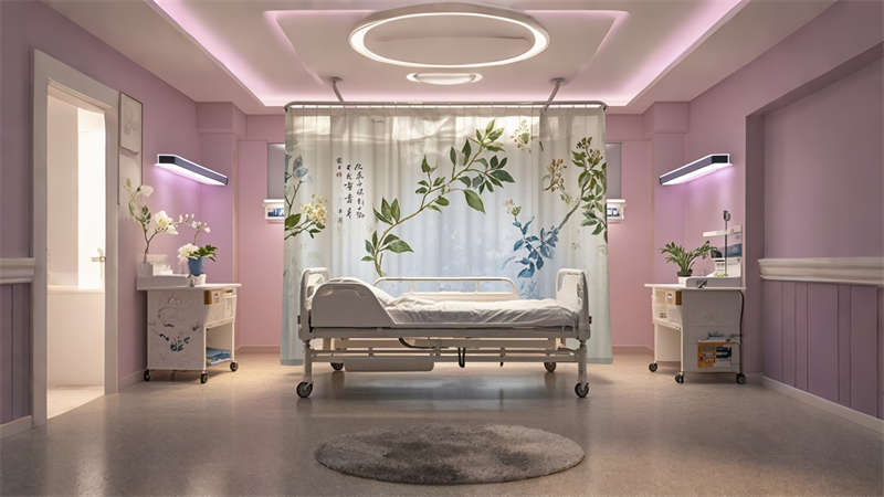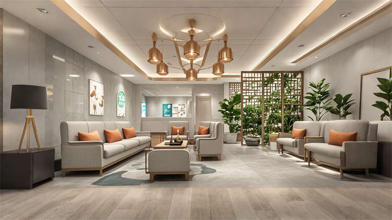 本2000平中醫(yī)院設(shè)計(jì)融合傳統(tǒng)中醫(yī)文化與現(xiàn)代醫(yī)療功能,采用 ' 療愈之境 ' 核心理念。空間規(guī)劃采用 ' 回' 字形動(dòng)線,門診、診療、康復(fù)三大功能模塊環(huán)繞中央庭院布局。色彩體系以米白、淺灰為基底,點(diǎn)綴赭石、黛青等傳統(tǒng)中藥色彩,墻面肌理漆模擬紙張質(zhì)感呼應(yīng)古籍文獻(xiàn)。診療區(qū)域采用模塊化隔斷系統(tǒng),兼顧隱私與通風(fēng)需求。智能照明系統(tǒng)可模擬晝夜節(jié)律變化,候診區(qū)座椅集成無線充電功能。重點(diǎn)區(qū)域設(shè)置 AR 中醫(yī)文化互動(dòng)裝置,住院部走廊每 10 米設(shè)置中藥香薰擴(kuò)散點(diǎn)。材料選擇注重環(huán)保性與耐久性,地面采用防菌 PVC 卷材,墻面使用易清潔的納米涂層。整體設(shè)計(jì)通過現(xiàn)代設(shè)計(jì)語言詮釋中醫(yī) ' 天人合一 ' 理念,打造兼具專業(yè)醫(yī)療功能與人文關(guān)懷的現(xiàn)代化中醫(yī)院空間。