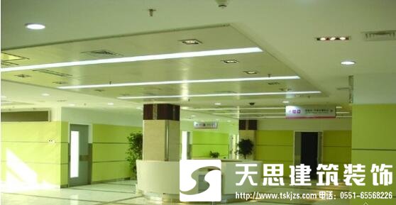 病房——橡膠地板。衛(wèi)生間、開水間、消防梯及通道——地磚。門診樓、行政辦公、科教室——防滑地磚。科研、檢驗(yàn)——防靜電地板、防腐蝕地磚。天花,除門診大廳、電梯廳、過廳等公共空間外,可采用半隱式輕鋼龍骨防水石膏板吊頂。墻面——殺菌彩色乳膠漆。